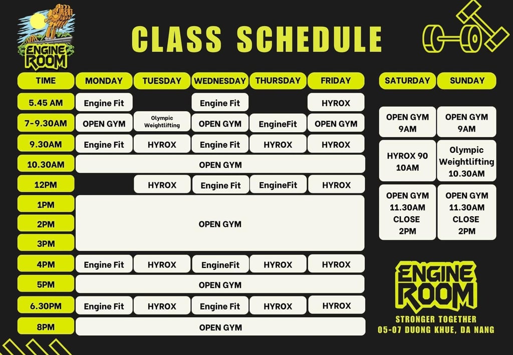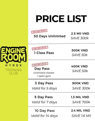 As an official HYROX affiliate, we bring the global fitness race to Da Nang with dedicated HYROX classes, alongside our signature EngineFit sessions.