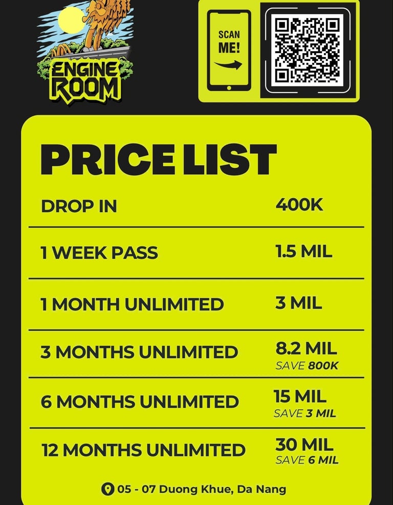 We're a located a few minutes walk south of the Trần Thị Lý bridge. Parking is located in the front or back of our gym.